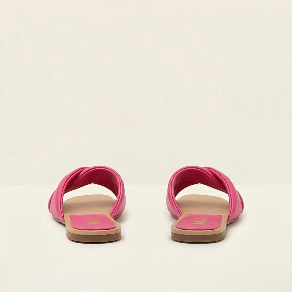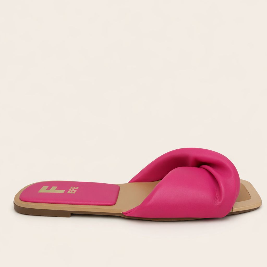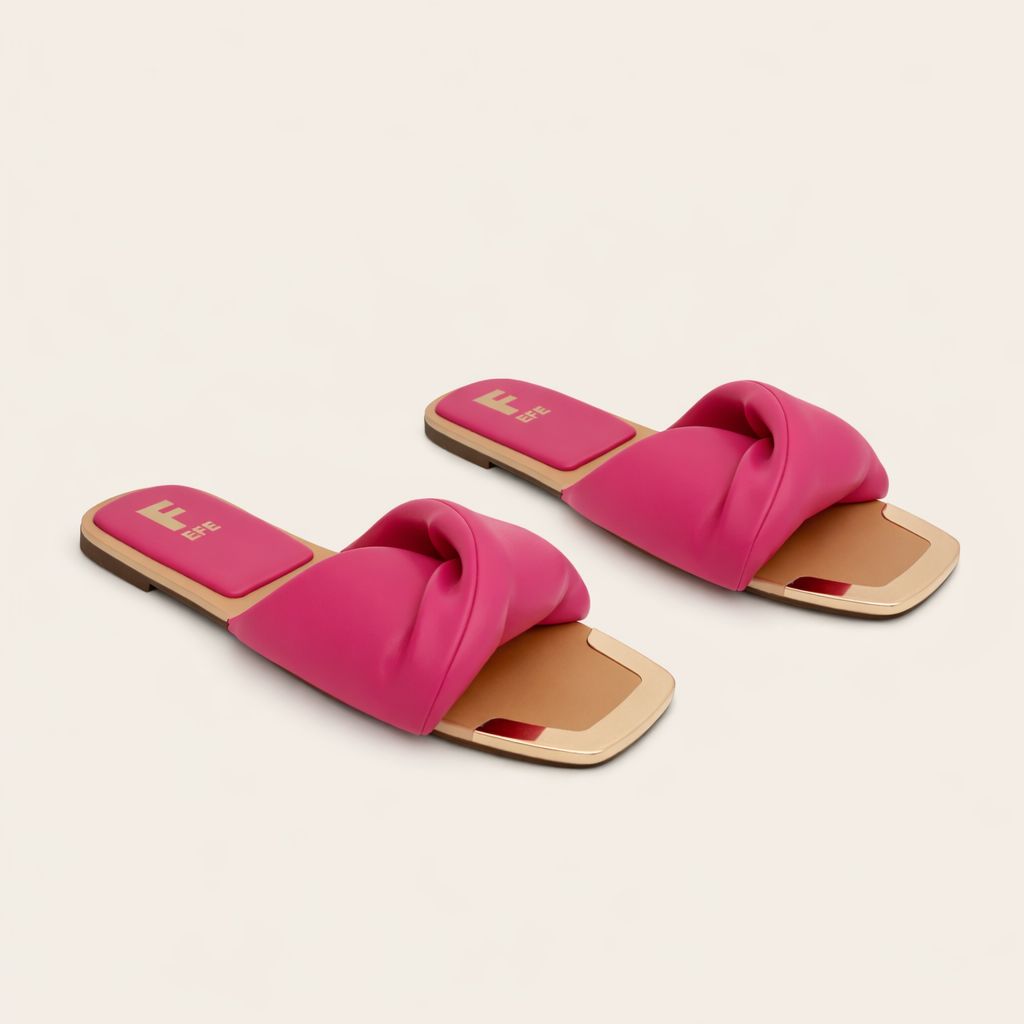 Huaraches color rosa fiusha para mujer, material sintético, sandalia tipo slide con nudo, modelo ligero, moda casual urbana minimalista.