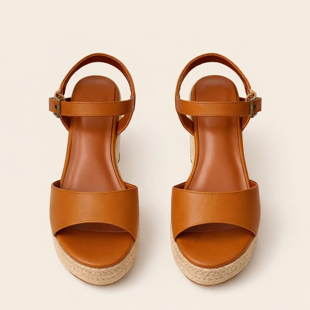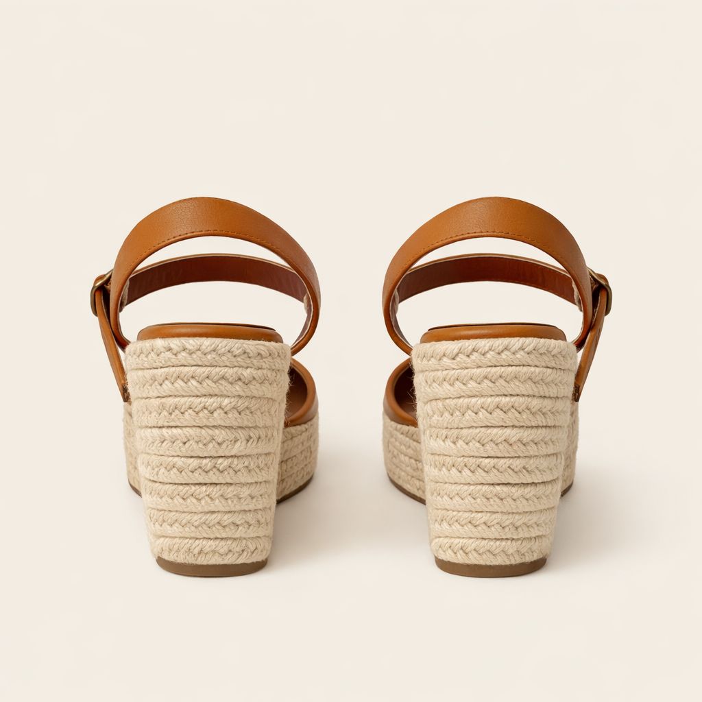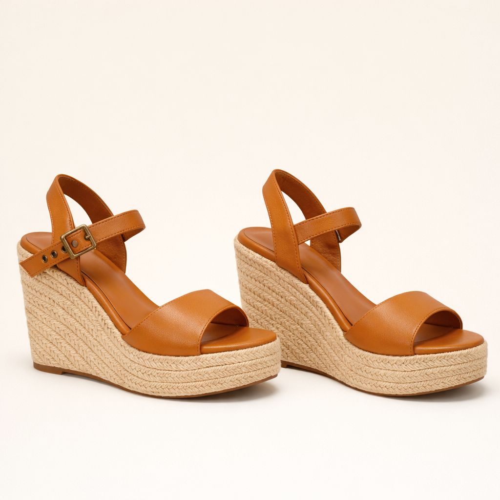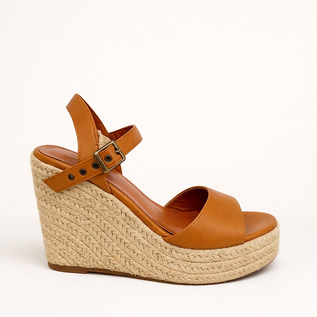 Huaraches color camel para mujer, material sintético resistente, plataforma forrada de yute tipo alpargata, modelo ligero, estilo casual / verano, moda urbana.